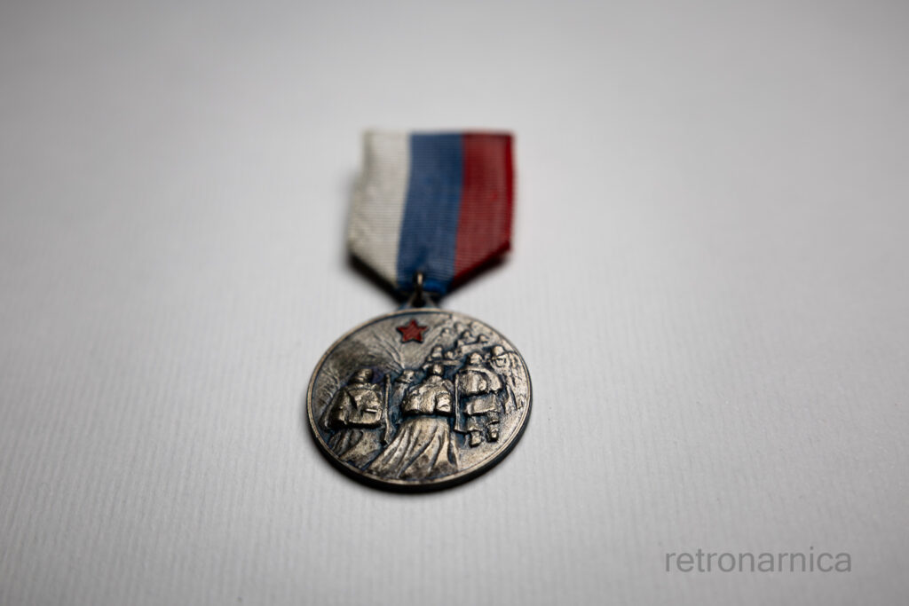 Na sprednji strani je reliefni prikaz kolone partizanov v zimskem pohodu ter deča zvezda.